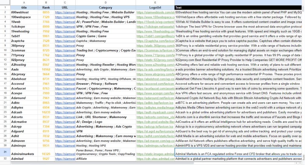 Latest 1000 tools list csv file, includes list of important tools websites, website icons, categories, tool details.