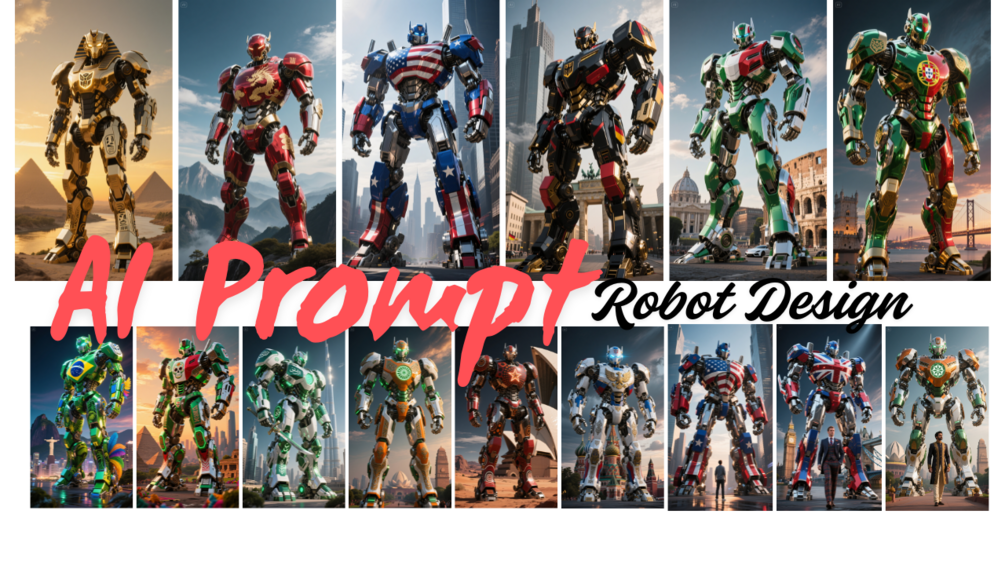 Each prompt is carefully crafted to help you generate robots that are rich in national identity — inspired by flags, traditional art, architecture, and cultural symbolism. It’s the perfect way to blend futuristic technology with the deep heritage of different nations.